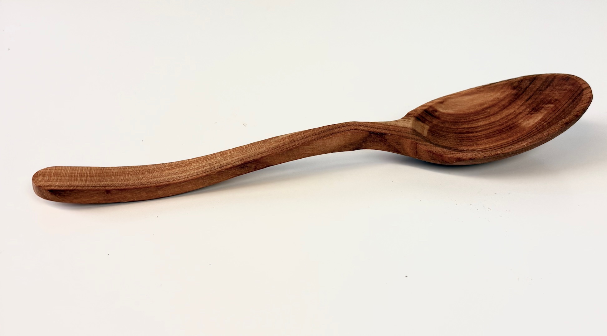 Träsked i oljad körsbär med böjt skaft.