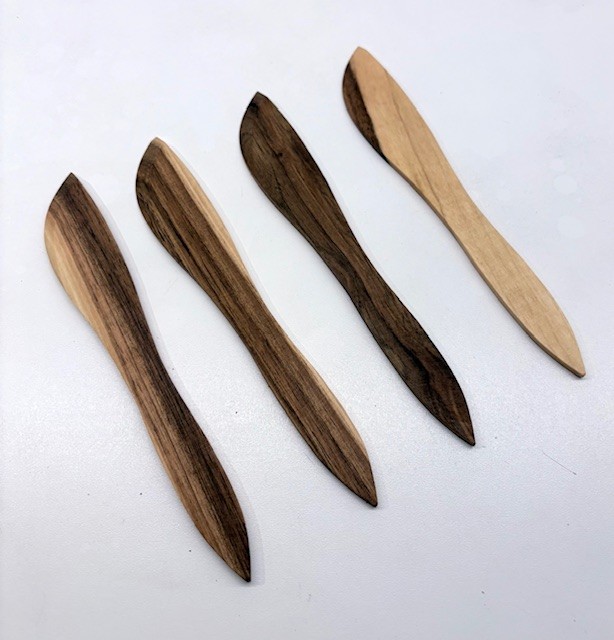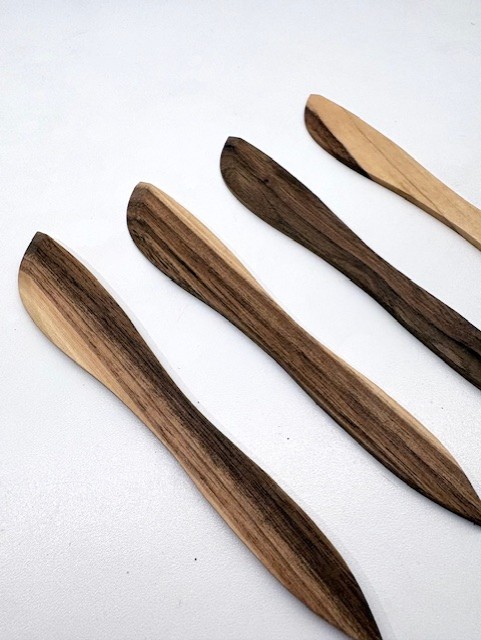 Smörkniv i valnöt, träslaget varierar mycket i färg.