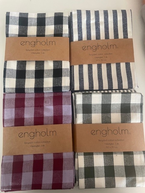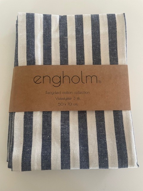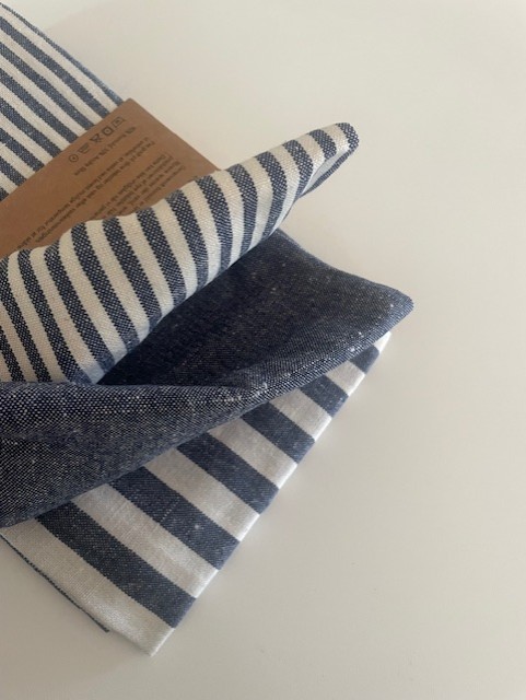 Kökshandduk marinblå 3-pack, 2 olika ränder och en enfärgad.
