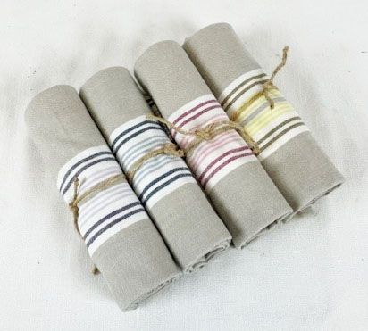 Kökshandduk natur/vit/gul randig.