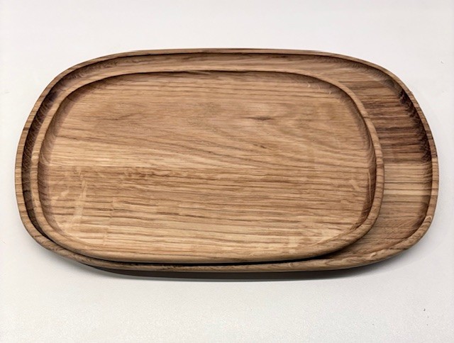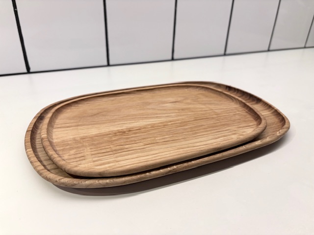 Plockbricka i ek stor, med liten kant runt.