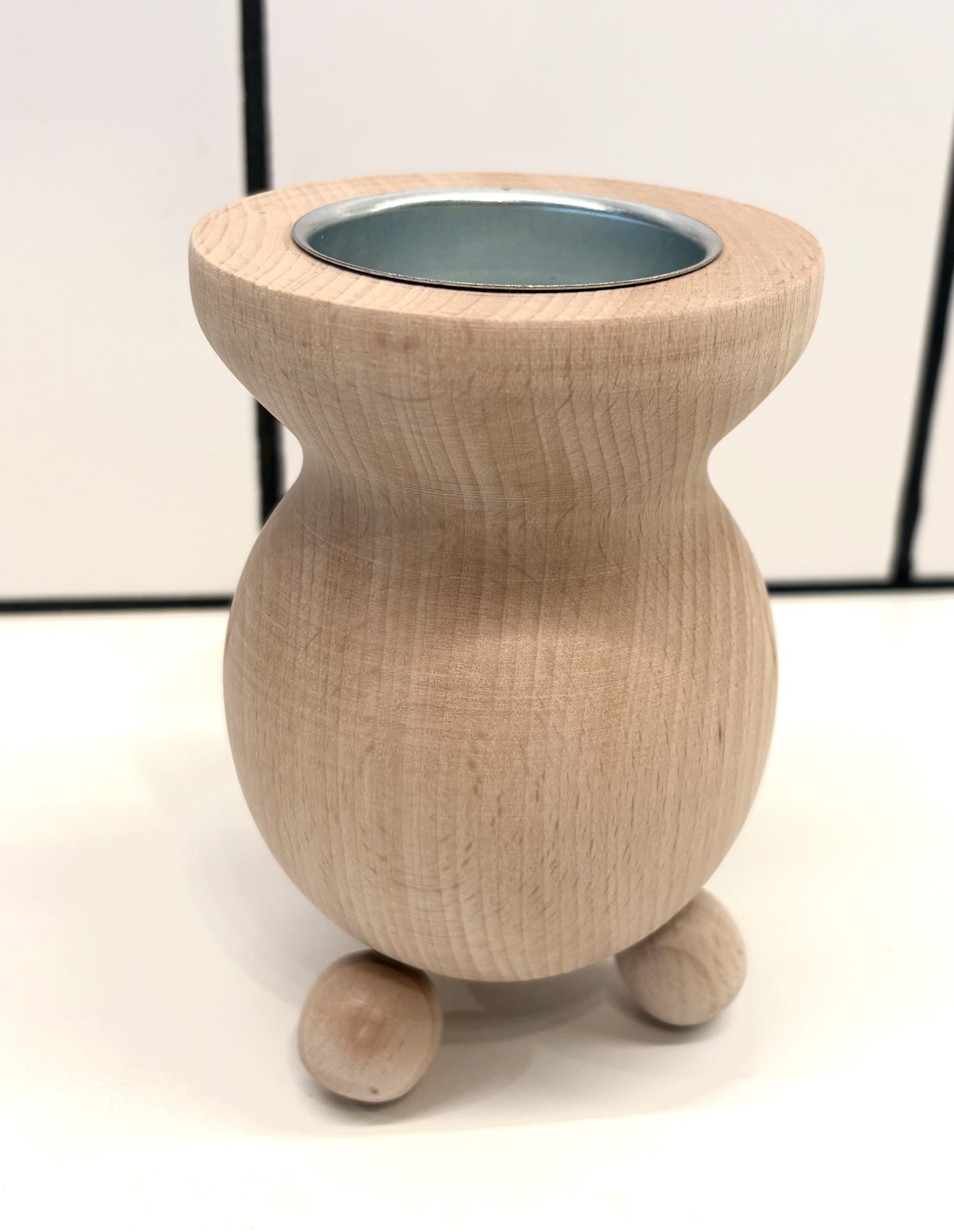Med kopp i metall.